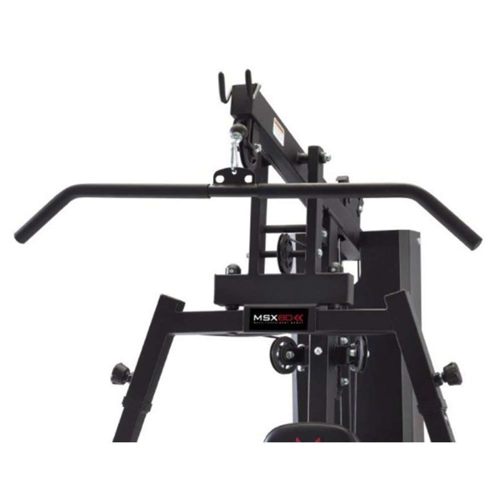 Daugiafunkcinis jėgos treniruoklis, su kuriuo galima atlikti daug pratimų įvairioms raumenų grupėms. Daugiafunkcinis treniruoklis MSX-60 – 70 kg svorio stelažai, taupantis vietą.